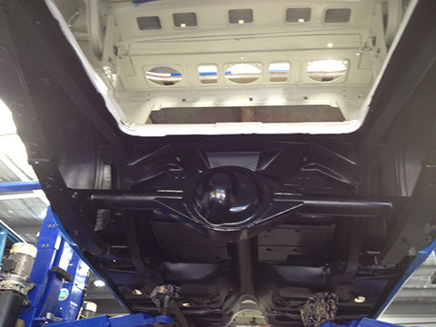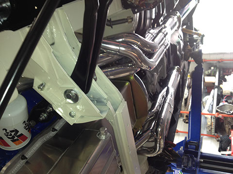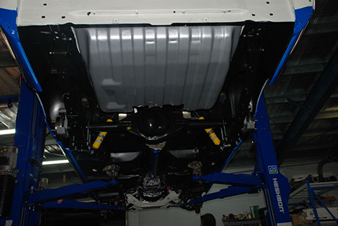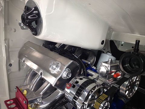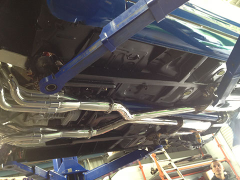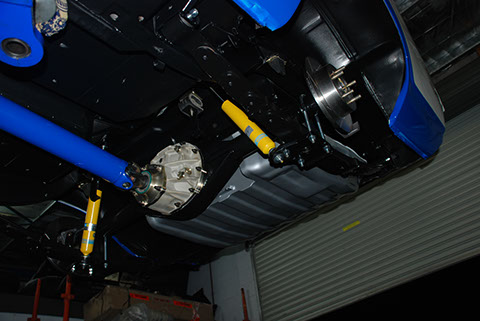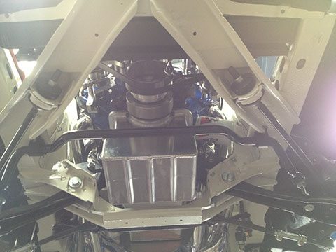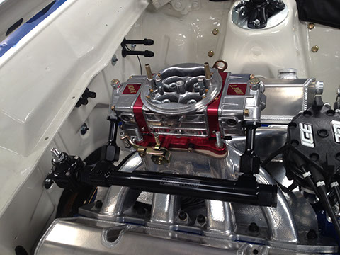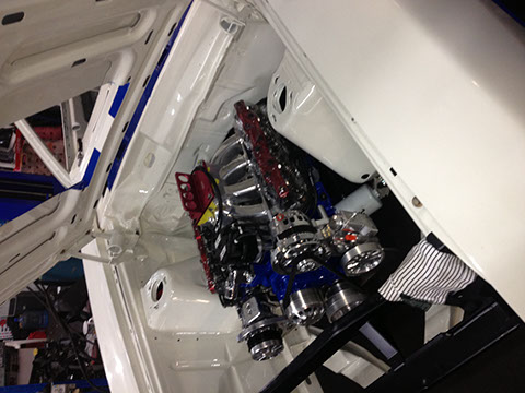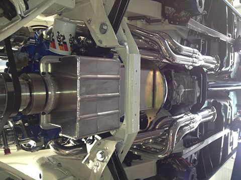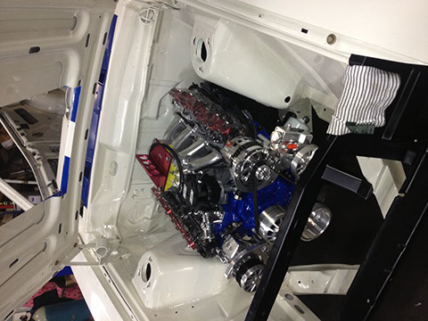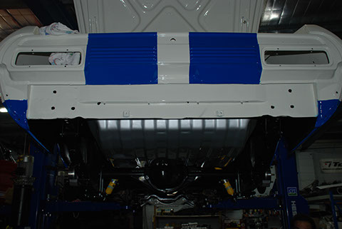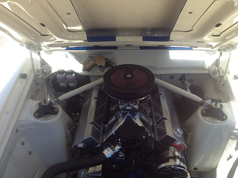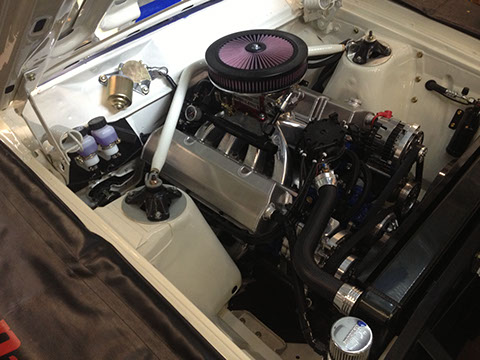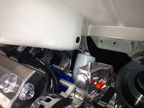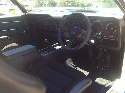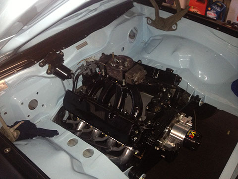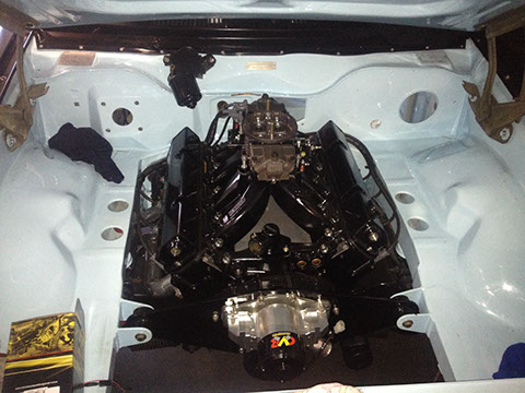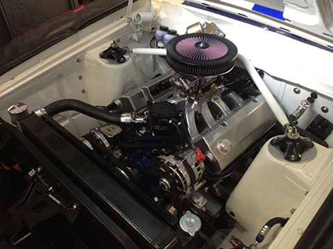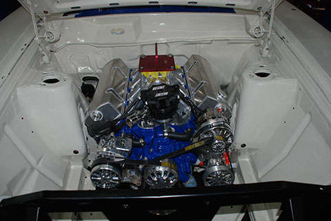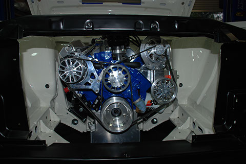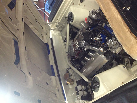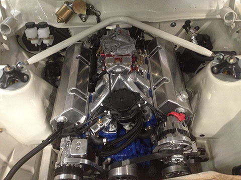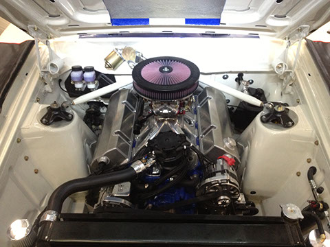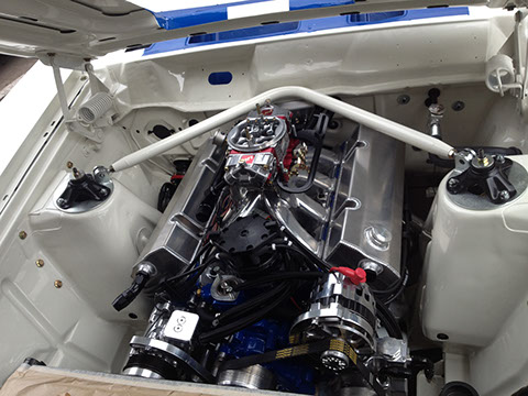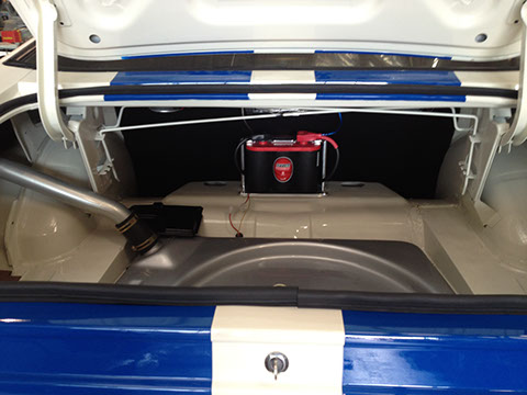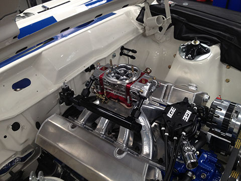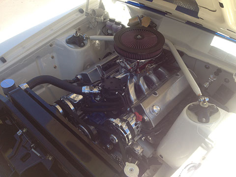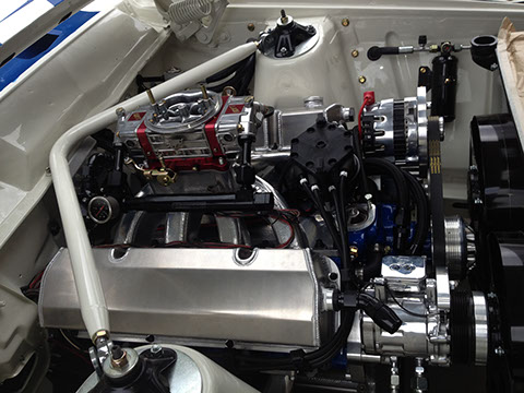The car runs a 680HP 434 cui Windsor with 4V Cleveland heads, 1050 CFM Quick fuel carby, 5 speed Tremec TKO gearbox, 31 spline Mark Williams 9" diff and AP racing brakes. Every part of this car has been customised with hidden wiring; even the A/C lines are hidden in the chassis. The fuel pump has been hidden in a cut out under the fuel tank. The exhaust is fully polished stainless all the way through. The interior features Recaro racing seats, a custom Momo steering wheel with matching Cobra blue stitching and a Tilton race pedal set up. We hope that the new owner will enjoy this one of a kind custom built car.